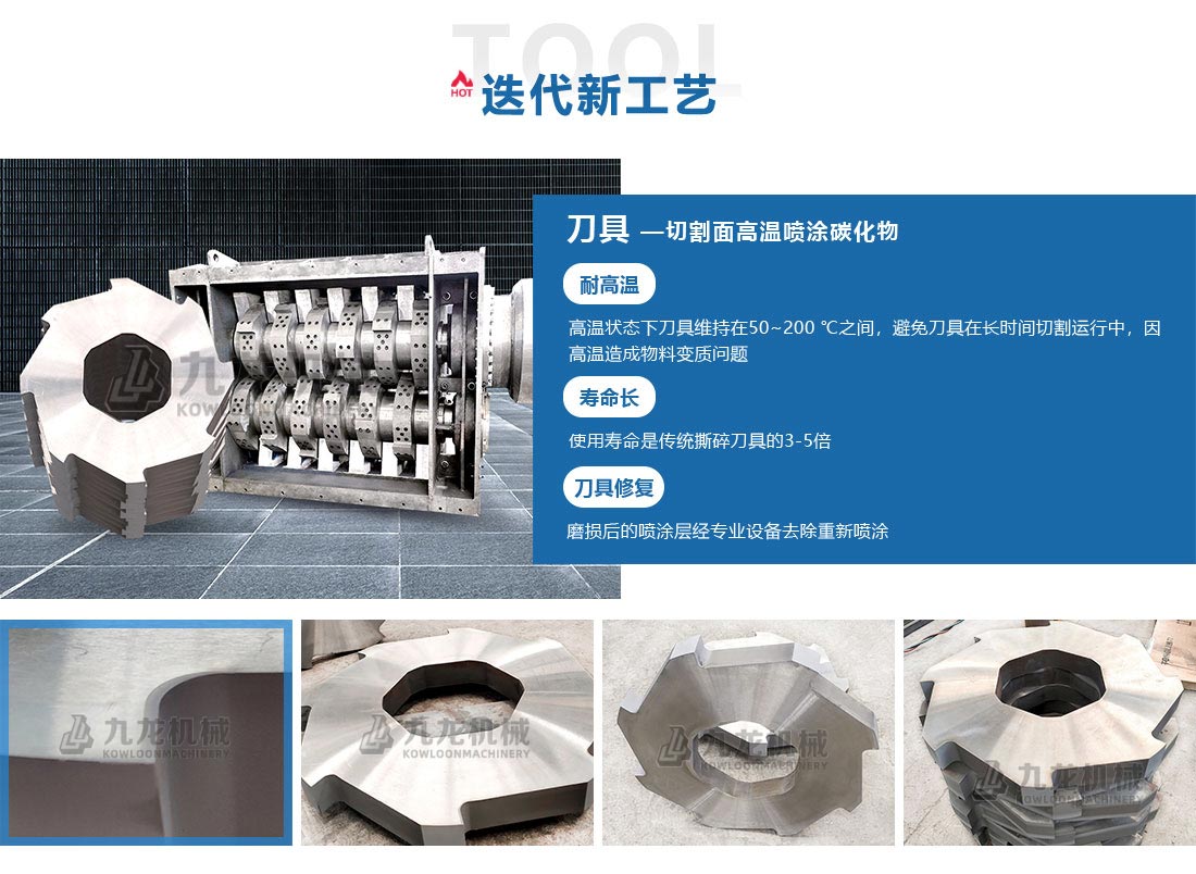 動刀材料采用專用特殊合金工具鋼鍛打毛坯,精密機加工、多次熱處理和低溫冷凍熱處理技術而成,整體韌性硬度一致能重復修理再使用,確保剪切性能和使用壽命。定刀采用掛鉤式安裝,優(yōu)化刀具更換功能,使刀具維護更換更加方便。