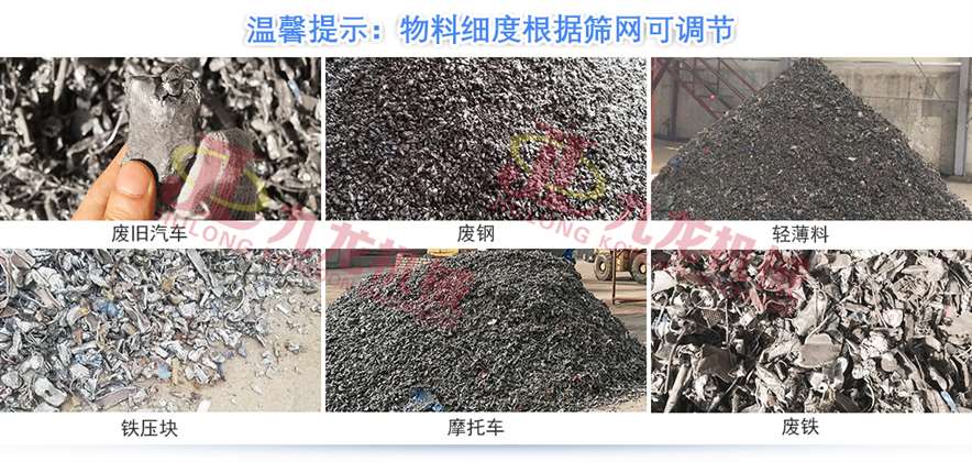 適用物料:易拉罐、啤酒罐、罐頭盒、雪碧罐、露露罐、自行車架、摩托車架、彩鋼瓦、車廂板、文件柜、保險箱、汽車槽梆、打包壓塊、電器殼、龍骨條、彩電、冰箱、洗衣機、廢角鋼、廢方管、油漆桶、自行車、摩托車、汽車殼、彩鋼瓦、廢角鐵、卷閘門、鐵皮箱等。