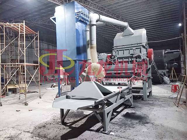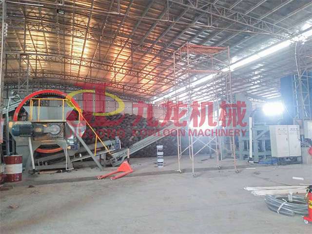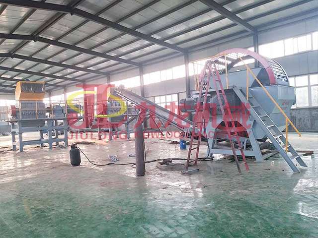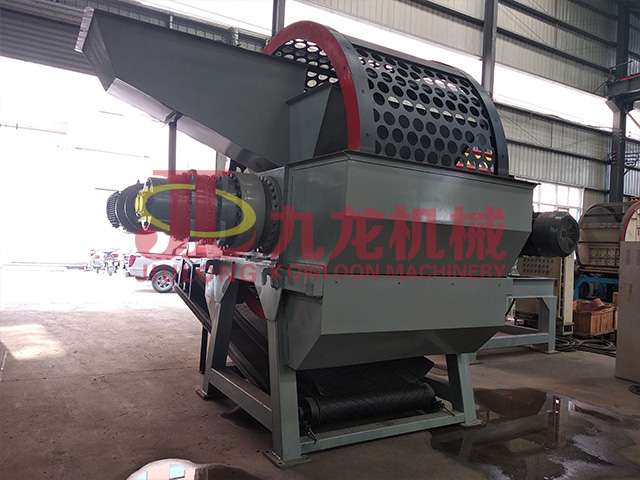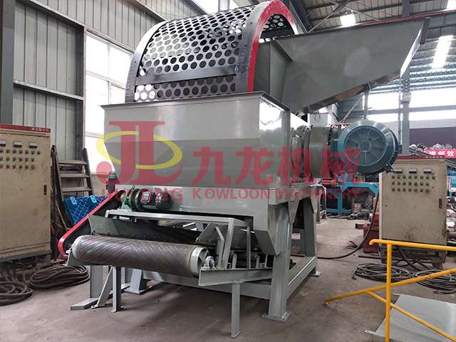 在工作原理上輪胎撕碎機(jī)采用低速高扭矩轉(zhuǎn)動(dòng)的主軸電機(jī)直連設(shè)計(jì)通過(guò)刀片卡角作用將整個(gè)廢舊輪胎進(jìn)行破碎加工,經(jīng)過(guò)雙軸撕裂加工后的廢舊輪胎塊在滾篩的作用下實(shí)現(xiàn)在整個(gè)破碎過(guò)程中小于或者等于50*50的物料從圓網(wǎng)篩中漏出,進(jìn)入后續(xù)工序;大于50*50的物料經(jīng)圓網(wǎng)篩返回到破碎室進(jìn)行循環(huán)破碎,直至膠塊大小符合要求后排出撕碎機(jī)。經(jīng)過(guò)排出的大塊輪胎顆粒。